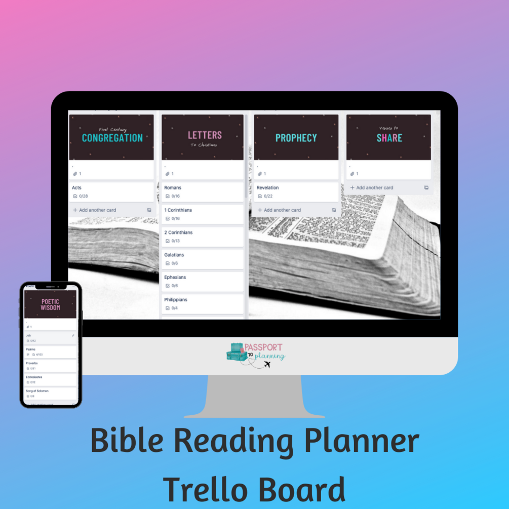 Our ready-to-go Trello template is the perfect Bible reading companion, regardless if you read the Bible in paper or digital format. Since Trello syncs across all devices, you will always have your Bible reading schedule on hand to know exactly where you left off.