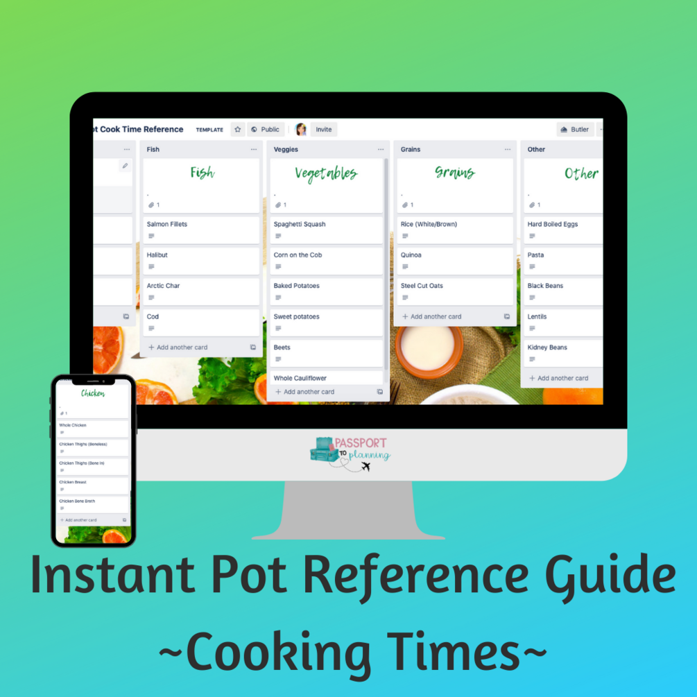 This Trello template provides a Quick Reference Guide for cooking times for some of the most common foods cooked in the instant pot (or other pressure cookers).